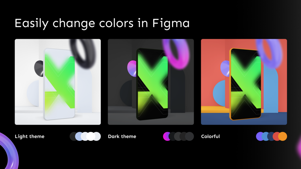 You can easily change colors and drag&drop scene objects right in the Figma and change device screens for your UI design.